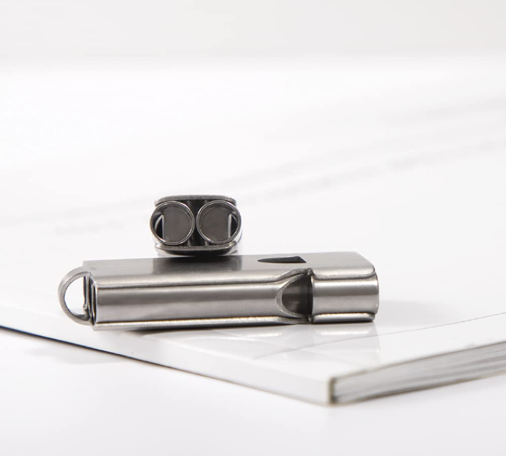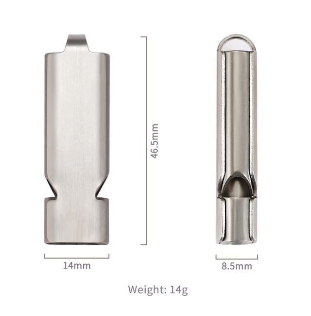 Còi EDC nhỏ gọn. Thiết kế móc khóa tiện mang theo, bền bỉ, phù hợp cho dân phượt, sinh tồn, leo núi hoặc đeo hằng ngày.