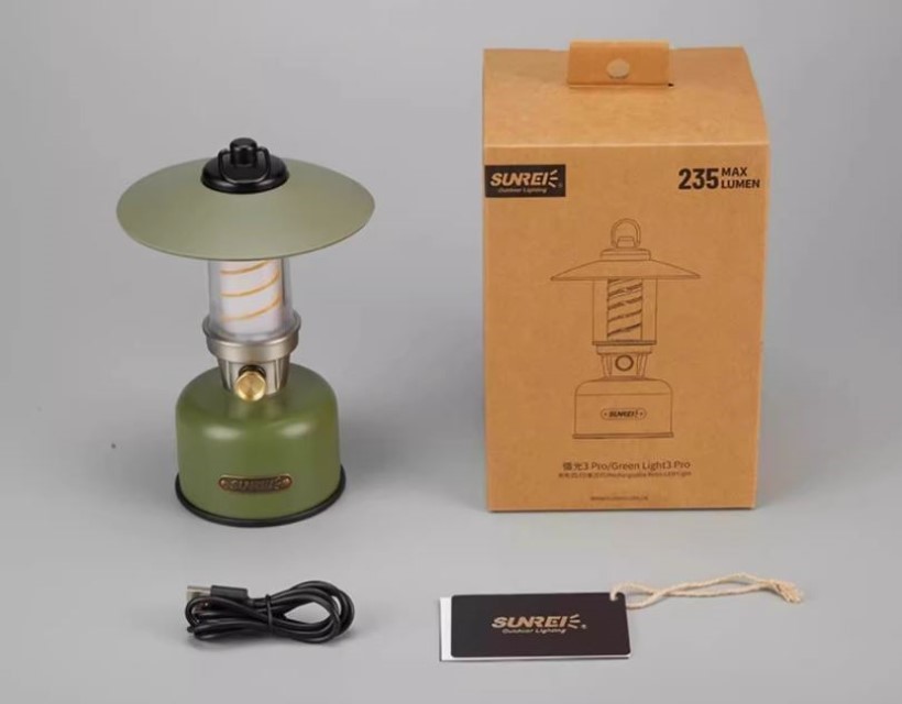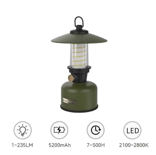 Đèn pin phong cách cắm trại cổ điển, có thể để bàn hoặc treo.
