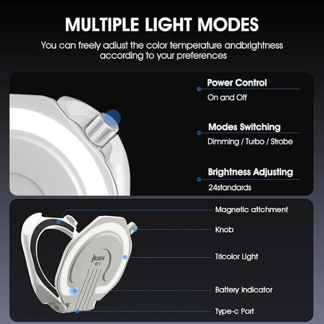 GIÁ ĐỠ ĐIỆN THOẠI NAM CHÂM : Bằng cách sử dụng nam châm N54 hàng đầu trong thiết kế tương thích với MagSafe của chúng tôi, chúng tôi cải thiện đáng kể độ an toàn khi gắn thiết bị của bạn và thời gian sử dụng của thiết bị. Nó không chỉ có thể được gắn vào điện thoại như một đèn chiếu sáng mà còn là giá đỡ điện thoại có thể điều chỉnh theo mọi góc độ. Nó có thể dễ dàng lắp đặt và tháo rời, và cũng có thể được cố định chắc chắn trên bất kỳ bề mặt sắt nào.