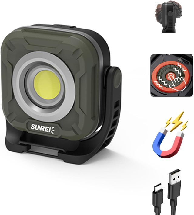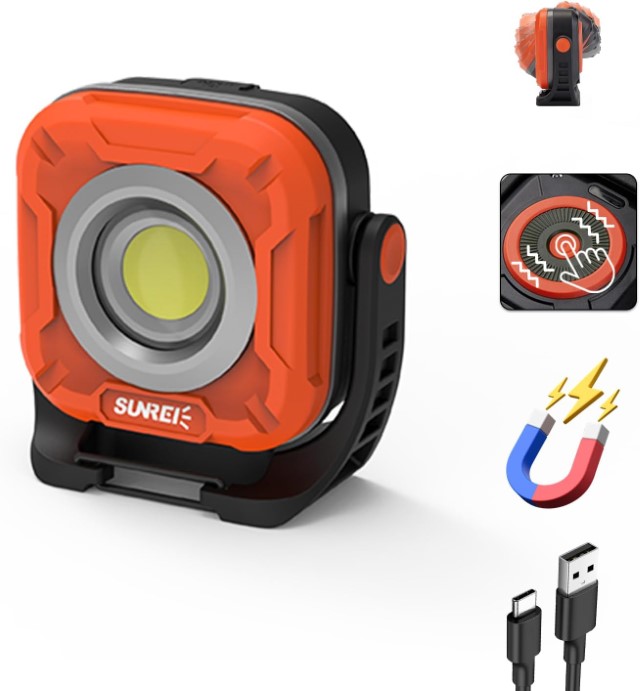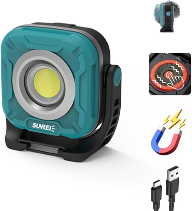 ●[Tuổi thọ pin dài, Độ sáng cao]: Đèn làm việc từ tính được trang bị pin dung lượng lớn 7800mAh, thời gian sạc chỉ mất 3,8 giờ, tuổi thọ pin lên đến 178 giờ và cáp dữ liệu CtoC tích hợp hỗ trợ sạc tốc độ cao. Với độ sáng lên đến 1300 lumen, đảm bảo hiệu ứng ánh sáng tuyệt vời trong mọi môi trường. Cho dù là cắm trại, câu cá đêm hay làm việc tại công trường xây dựng.