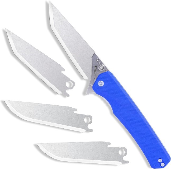 ● Bao gồm lưỡi dao bổ sung – Đi kèm với 3 lưỡi dao thay thế bổ sung: kiểu drop point và tanto, mang lại tính linh hoạt và sẵn sàng cho nhiều nhiệm vụ khác nhau.