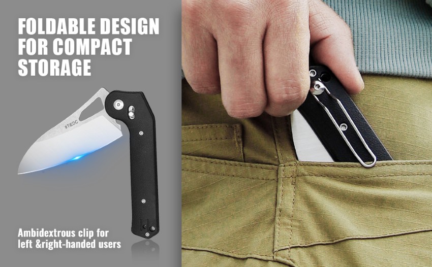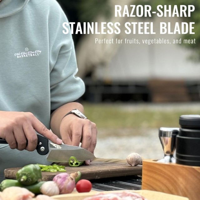 ●[Đa chức năng] - Dao bếp gấp gọn, cầm nắm thoải mái. Rất phù hợp cho các hoạt động ngoài trời, nấu ăn, nướng thịt, câu cá, leo núi, và thậm chí cả nấu những món ăn ngon tại nhà. Thiết kế gấp gọn cho phép bạn dễ dàng bỏ vào túi để cất giữ và mang theo tiện lợi.