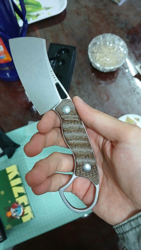 3. Tay cầm bằng Micarta màu nâu có họa tiết da tê giác cho vẻ ngoài đẹp hơn và độ bám tốt hơn