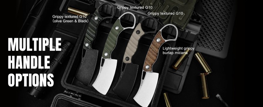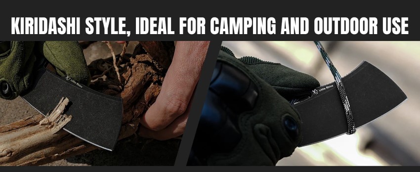 1. Thiết kế tay cầm với lưỡi dao chặt, lý tưởng cho cắm trại và sử dụng ngoài trời, hỗ trợ tốt cho việc chuẩn bị thực phẩm và làm việc với gỗ.