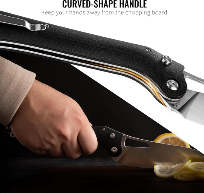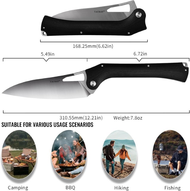 Dao gấp chất lượng cao với lưỡi dao rất sắc, thích hợp cho cả bếp trong nhà và nấu nướng khi cắm trại ngoài trời. Dao nhà bếp đa chức năng, tuyệt vời cho cà chua, khoai tây, cam, chanh và các loại trái cây khác. Rau, thịt và các loại thực phẩm khác.