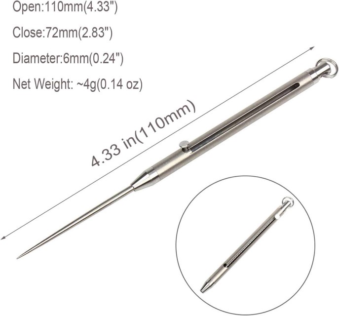 ⚙ Tăm titan lẫy gạt dễ dàng đóng mở với lò xo trượt. Dùng để ăn trái cây, lẩy ốc, đục lỗ nhỏ...