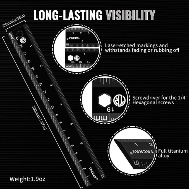 ●Chiều dài: 200mm tổng thể nhưng chỉ có thước đo có thể nhìn thấy là 190mm