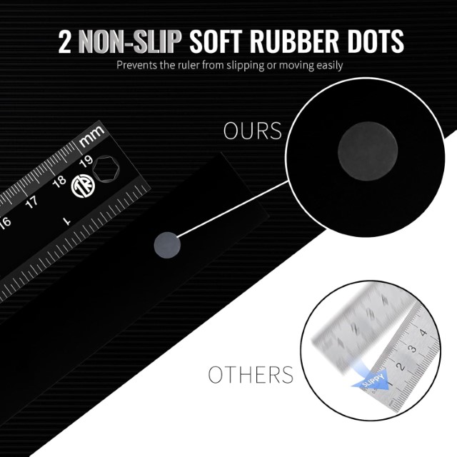 KỸ THUẬT XỬ LÝ: Thước đo này được gia công CNC và đánh bóng bằng cách mài, giúp bề mặt nhẵn mịn khi đo. Ngoài ra còn có hai miếng sọc silicon ở mặt sau, để ngăn thước trượt/di chuyển khi sử dụng.
